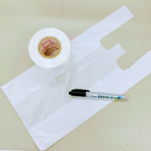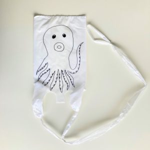 ビニール袋に絵を描いて袋の取っ手部分に紐を括りつけて~完成(*’∀’人)♥*+ 色ペンがあるともっと完成度が増しますよ✨