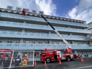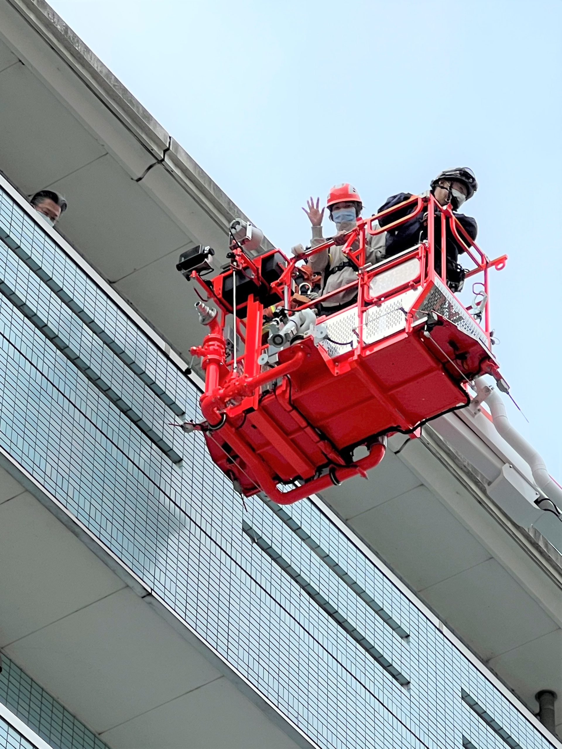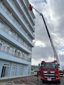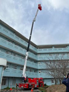 病院・ケアホーム・レジデントの最上階までハシゴを伸ばし調査を行います🧐
