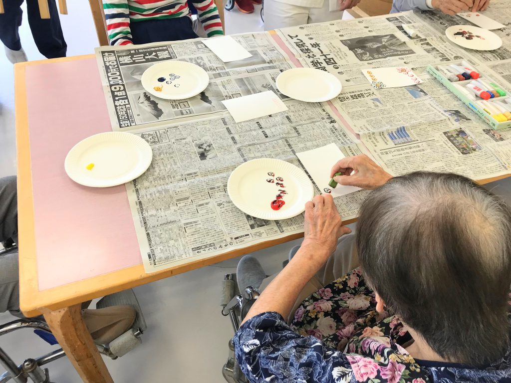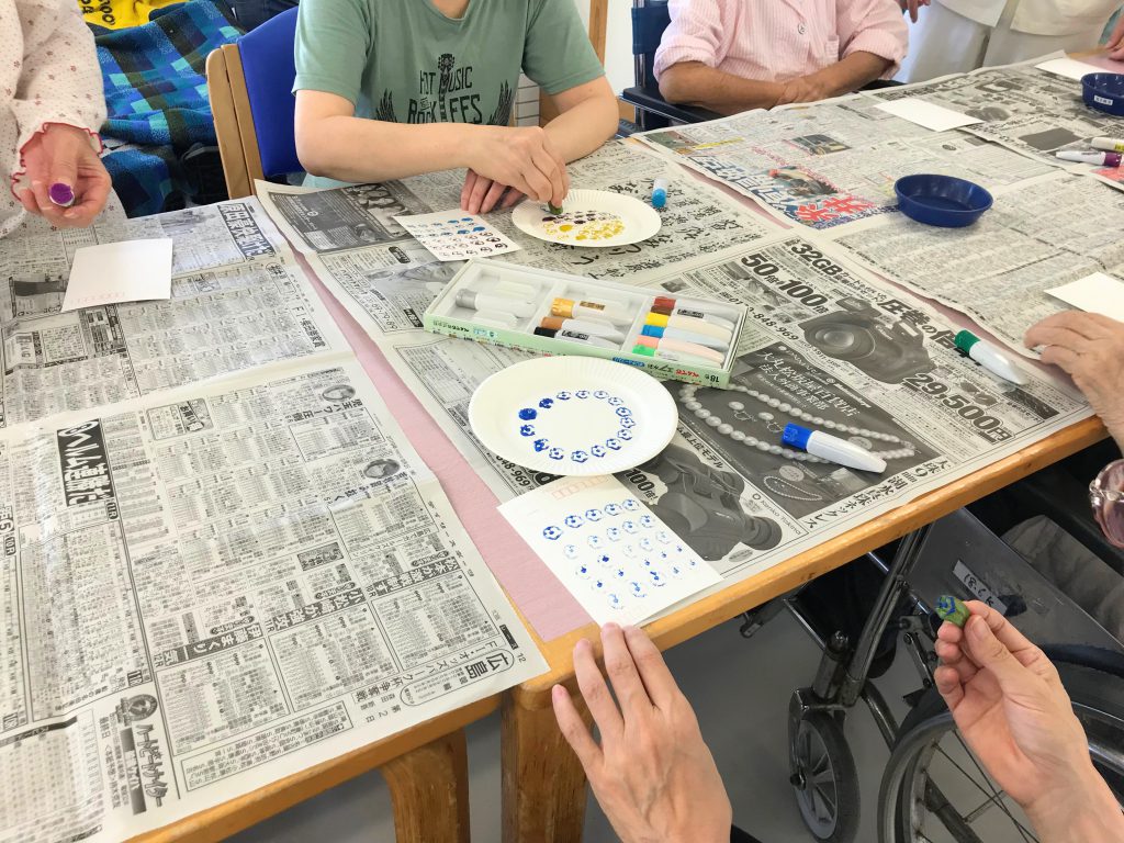 入院中の患者様も、思い思いの色や模様に仕上げ夢中で楽しんでおられました(*^-^*)
