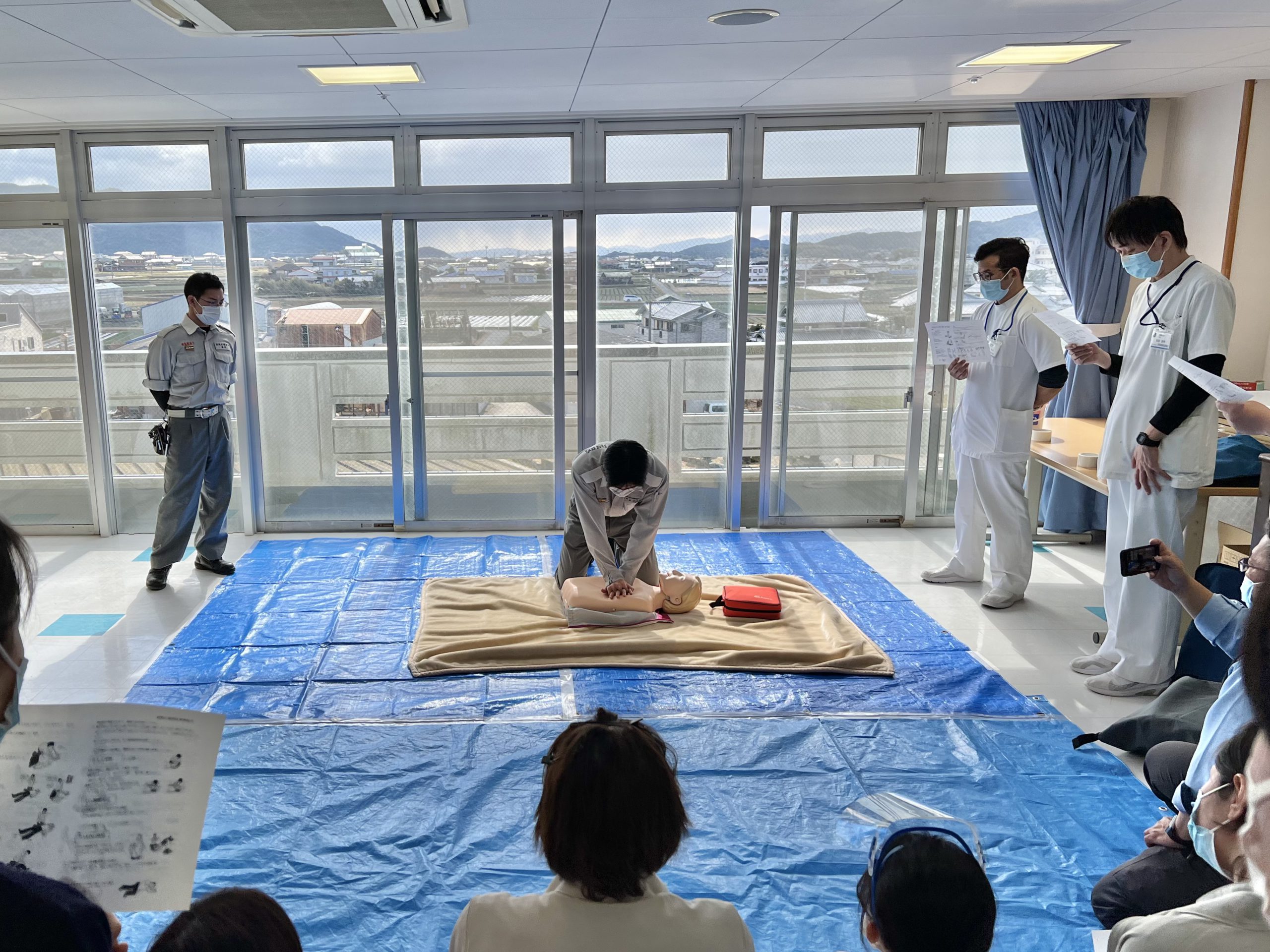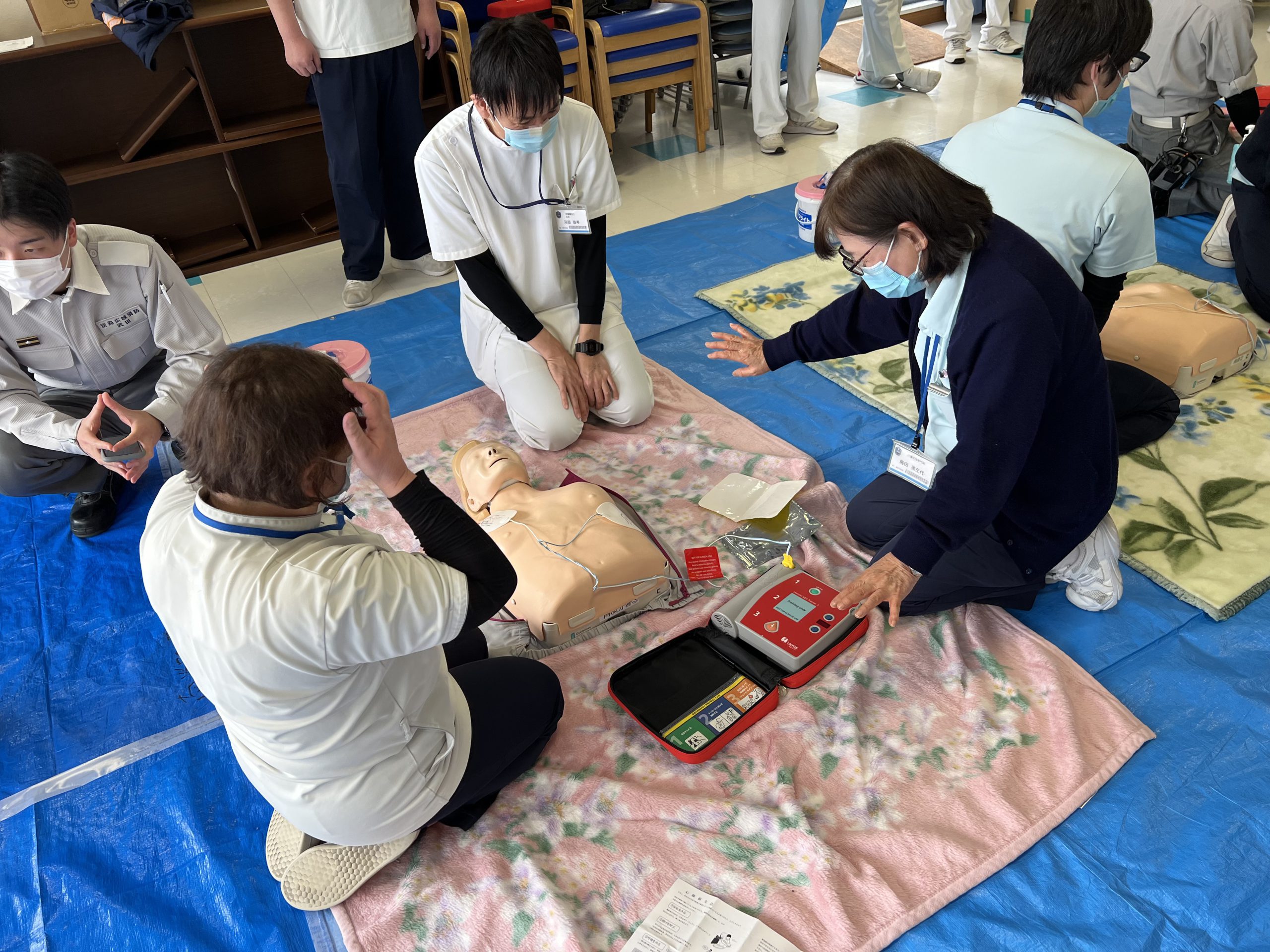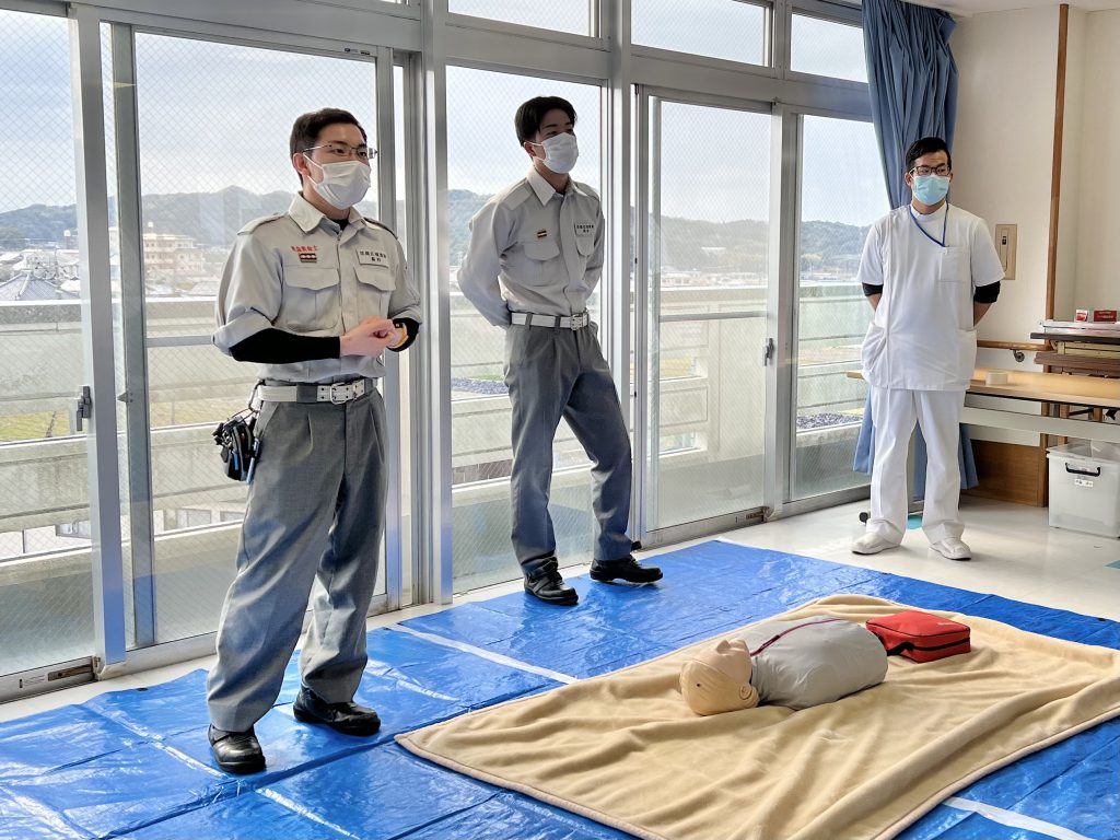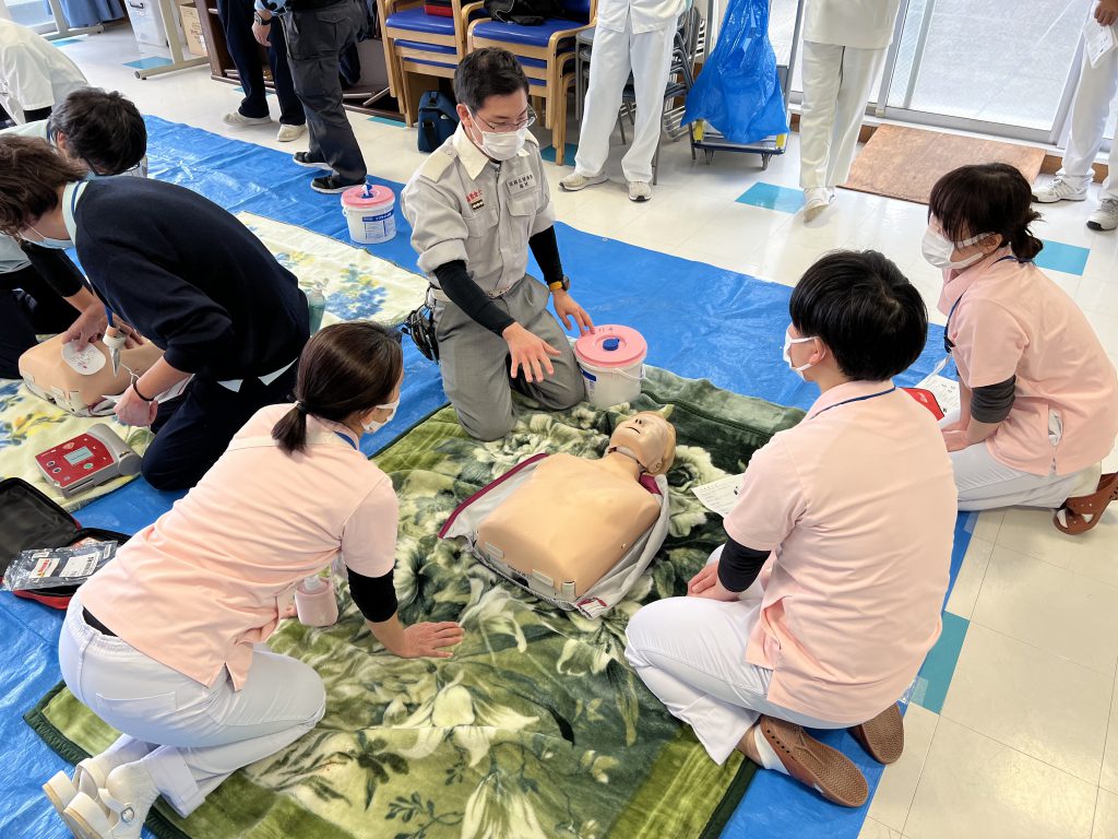 淡路広域消防 南淡分署の方にお越しいただき、人形とAEDを使用した実技研修を行いました😃