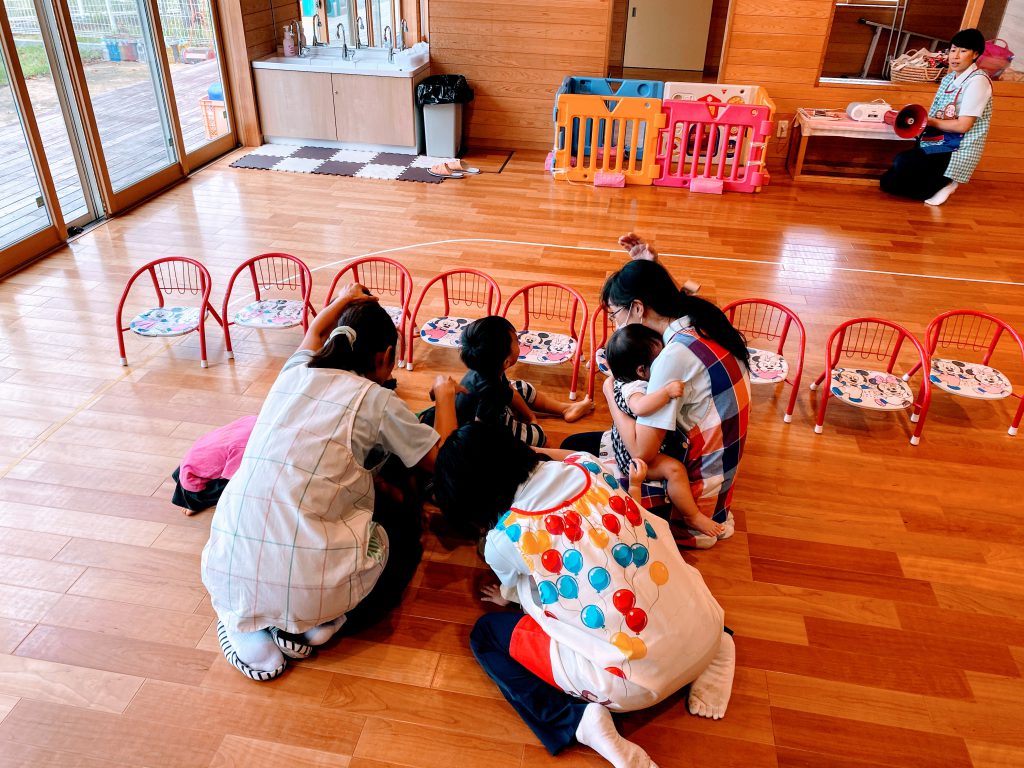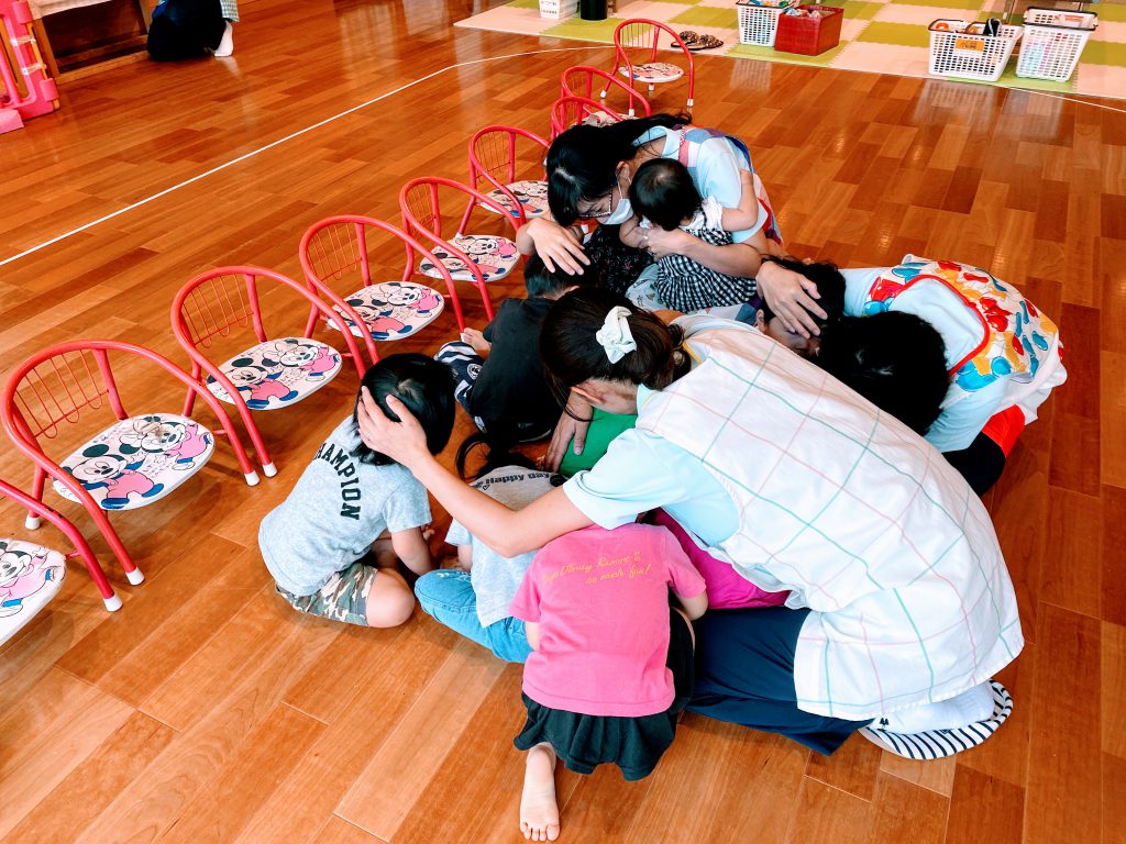 災害にも色々な種類はありますが、今回は託児所の子供たちと一緒に地震訓練を行いました。
