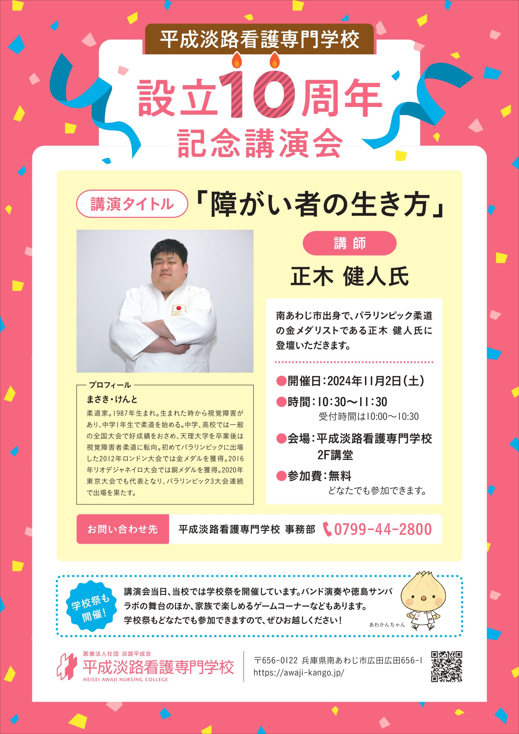 平成淡路看護専門学校の学校祭が、11月2日(土)に開催されます! 今回は設立10周年を記念し、南あわじ市出身の金メダリスト正木健人氏による講演会を実施するほか、学生による飲食店(模擬店)の出店、人気のキッチンカーもお呼びしています。 当院も地域健康教室の出張開催&救急車🚑の展示を行います。 その他、楽しい企画が盛り沢山!!! 皆さまぜひご参加ください🤩 (クリックで拡大表示されます) →詳細はこちら