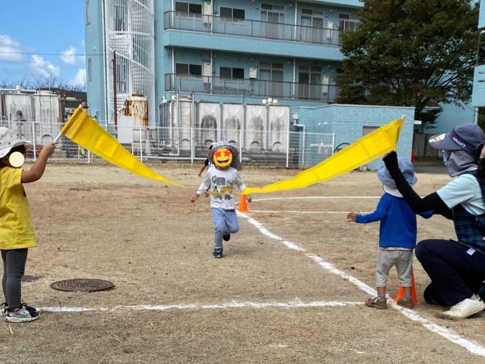 秋のミニ運動会「なかよし会」を開催✨ 今年は数年ぶりに保護者の見学がOKになり、子どもたちも張り切って入場! はじめは2歳児クラスのお遊戯「バナナなの?」です🍌 おさるさんの衣装を着てかわいいダンスを披露してくれました🐵 次はかけっこ! たくさん練習をして、上手に線に沿って走れるようになりました👏 最後にしっぽとりゲームもして、 がんばった子供たちにメダルの授与🥇 みんな金メダルです🤩