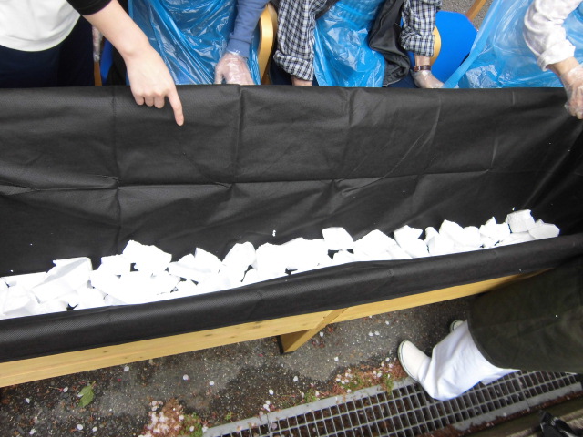 - 発泡スチロールを入れて