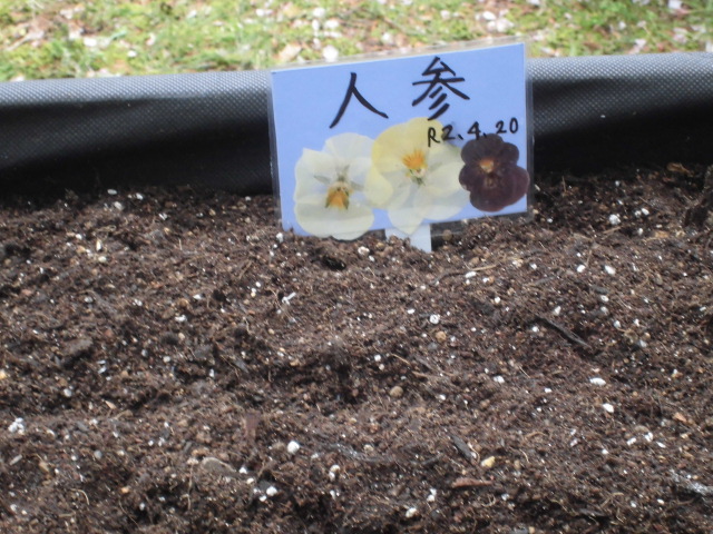 野菜の名前と種を蒔いた日を書いて