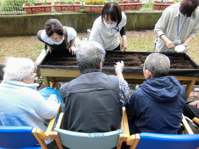 ゆづるは(重度認知症デイケア)では、利用者さんと一緒に野菜の種蒔きを行いました