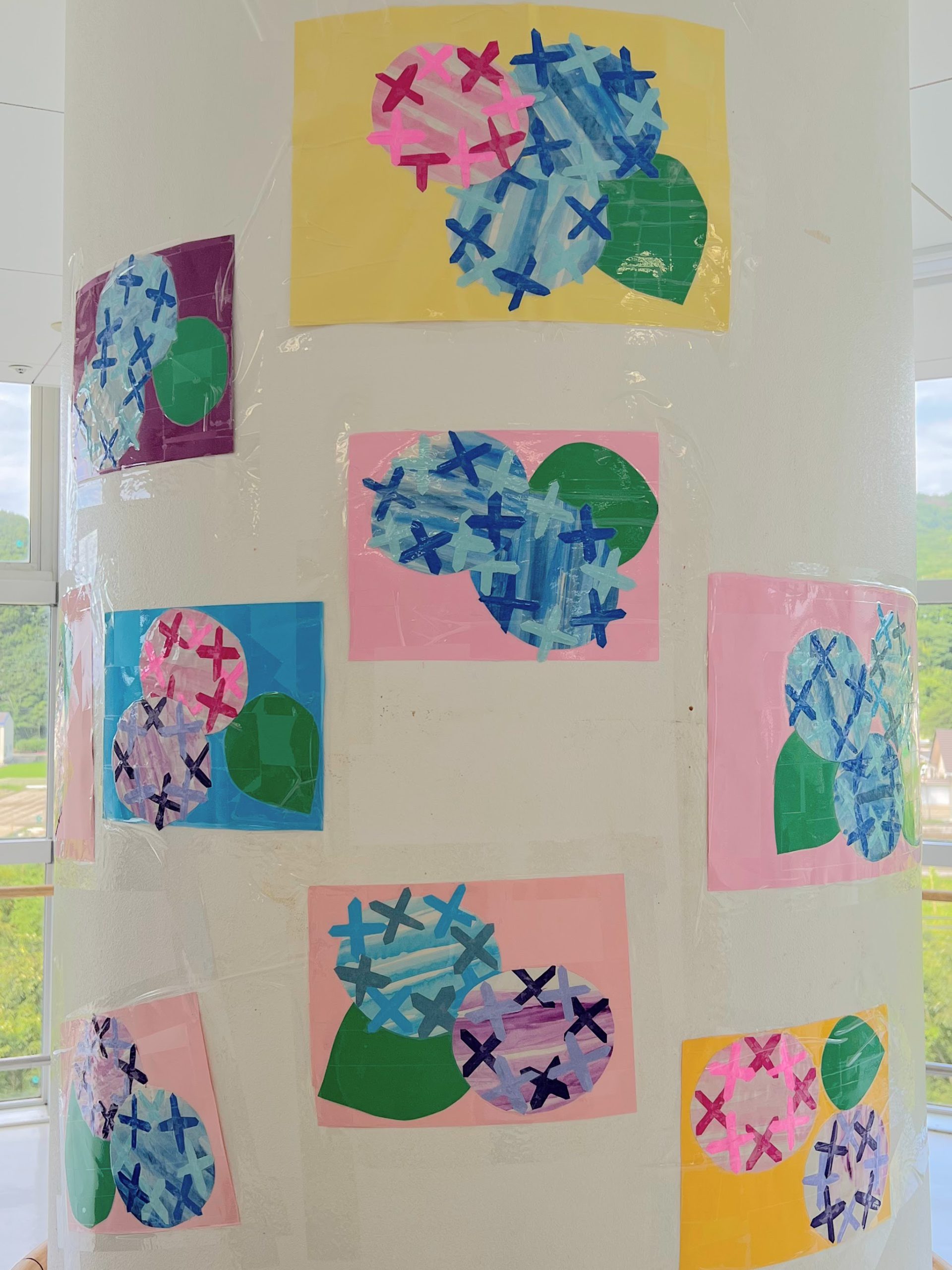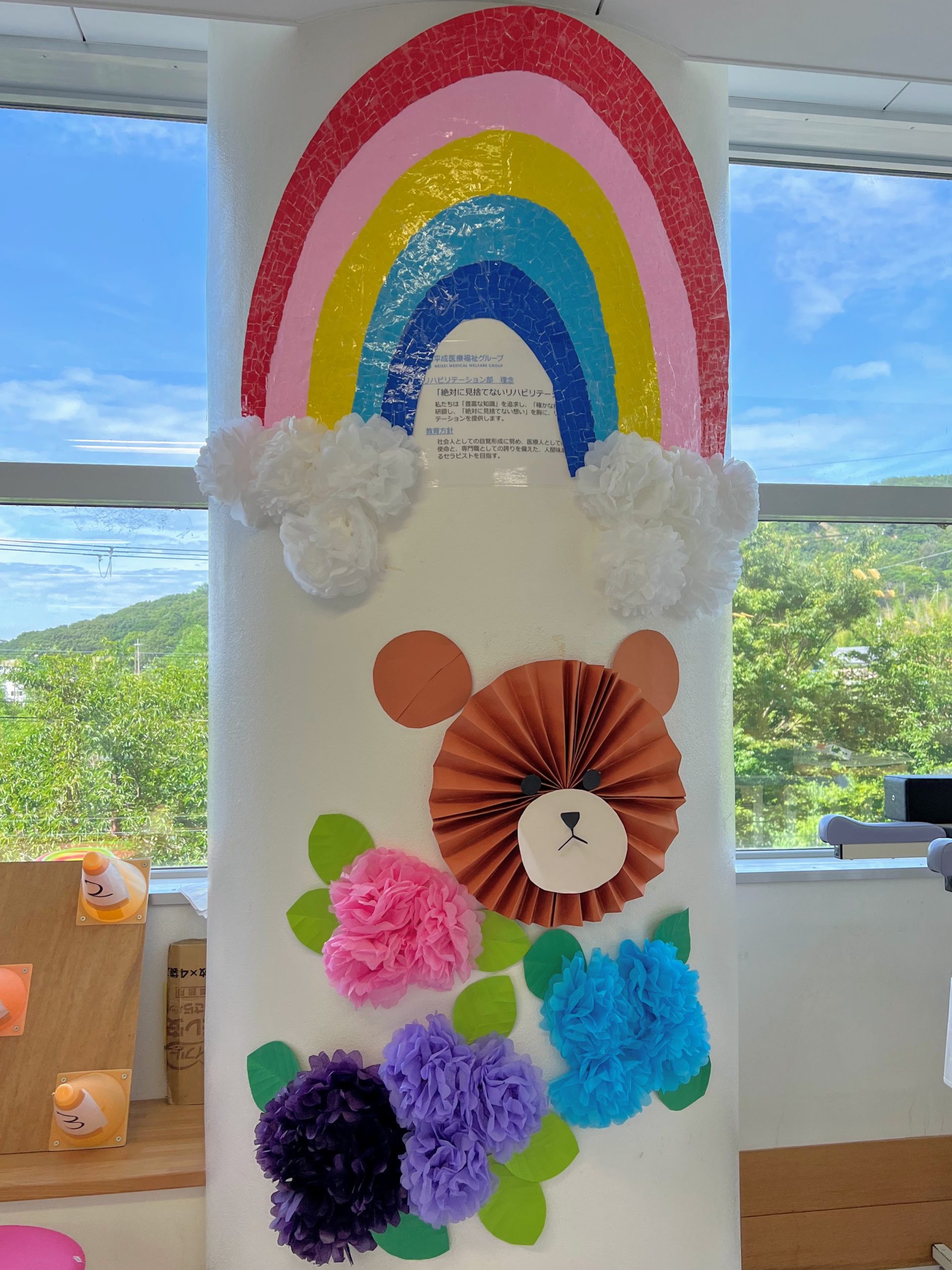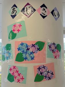 なんと!今年は過去最も早い梅雨明けとなりましたね☀ 紫陽花の見ごろは6月~7月と言われていますが、今年は早くに見れなくなってしまいそうですね… 今回は、院内の紫陽花をご紹介✨ こちらは立体的な紫陽花の作品です👇 虹がかかって鮮やか! こちらは入院患者さま達が作った作品です👇 壁や柱が綺麗な紫陽花でいっぱいです♪ みなさんは今年、紫陽花は見られましたか? 梅雨が明けて、これからもっと熱くなります🥵 水分をこまめにとって熱中症には気を付けましょう!