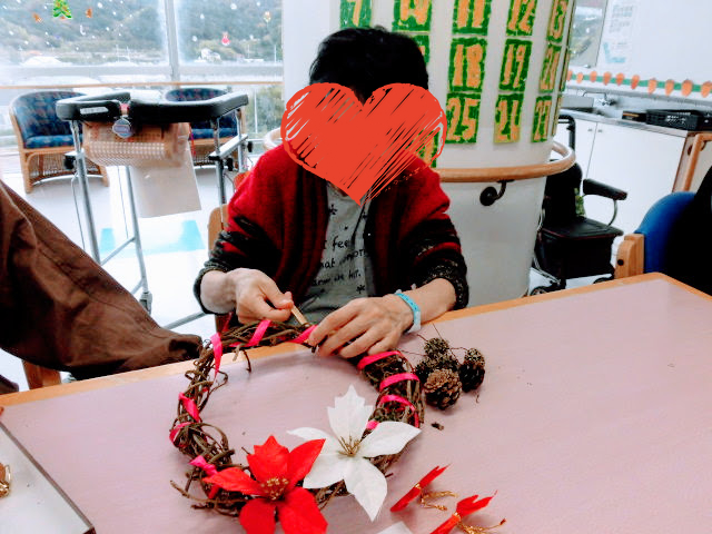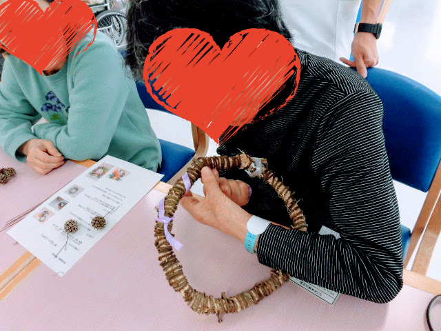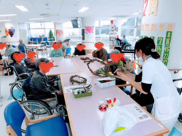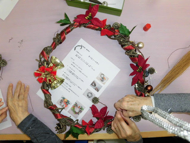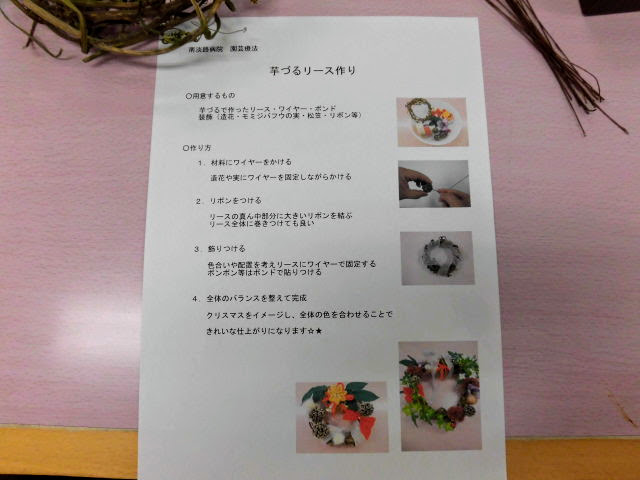 そこで12月の園芸療法は、入院中の患者様と一緒にクリスマスリースを作っちゃおー!!体験です。